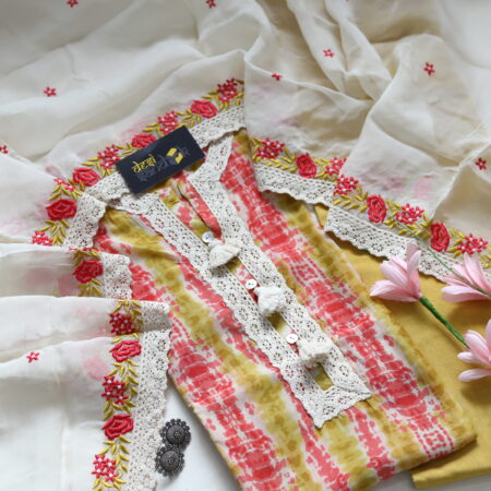 Offwhite chanderi kurti with colorful chanderi dupatta 3 piece set