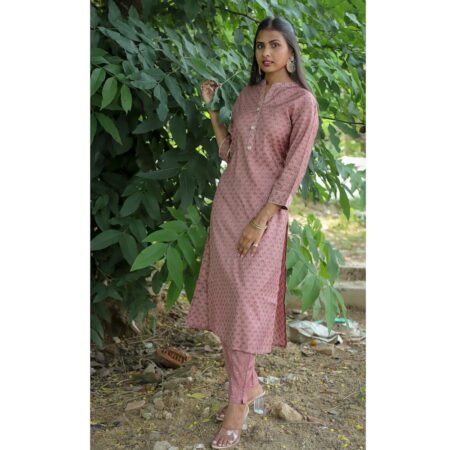 Opera mauve bandhani inspired cotton top with kota dupatta set
