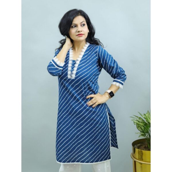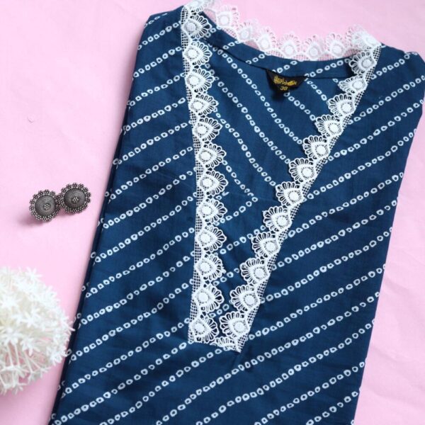 Amazing bandhani printed cotton kurti with lace detailing , perfect for summers.