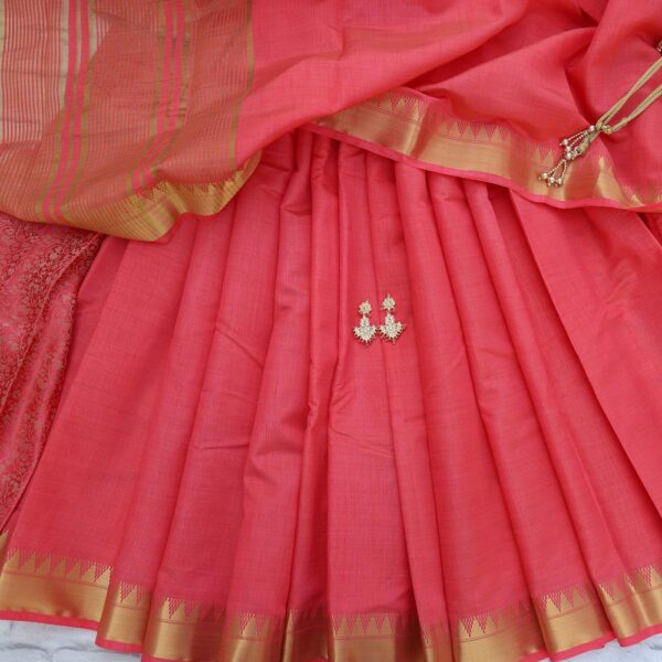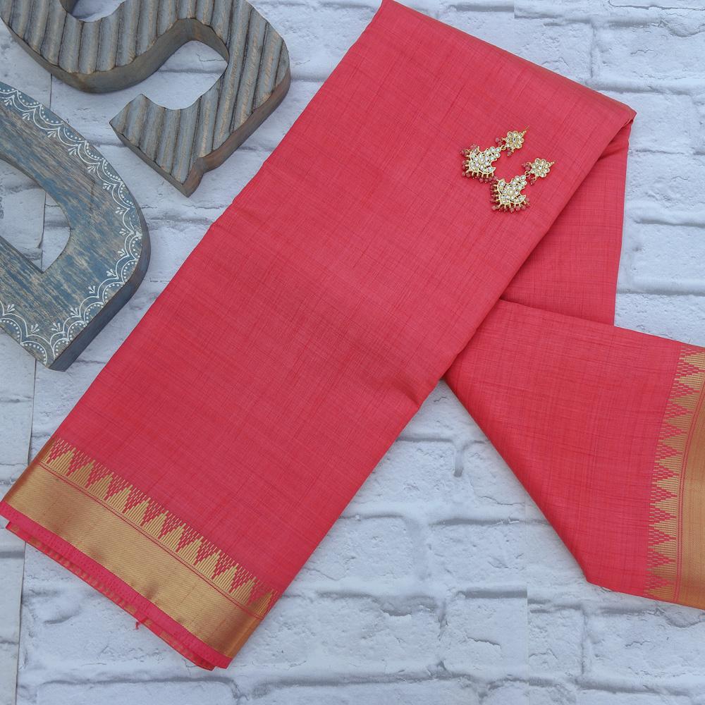 Beautiful pink silk saree with golden border, perfect for casual outings, kitties, school, colg etc