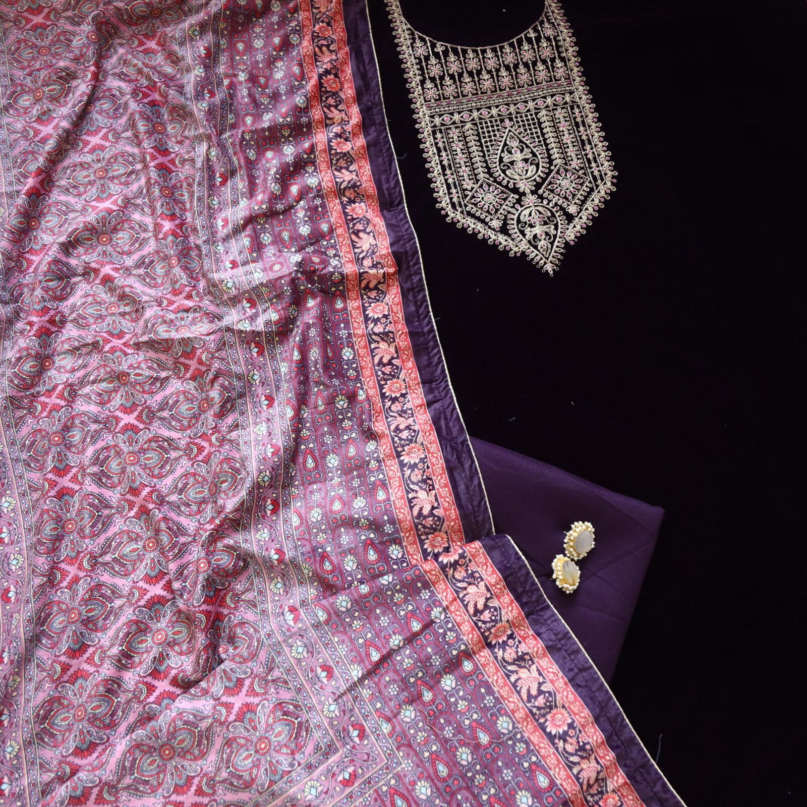 Rasin velvet top with printed velvet dupatta set